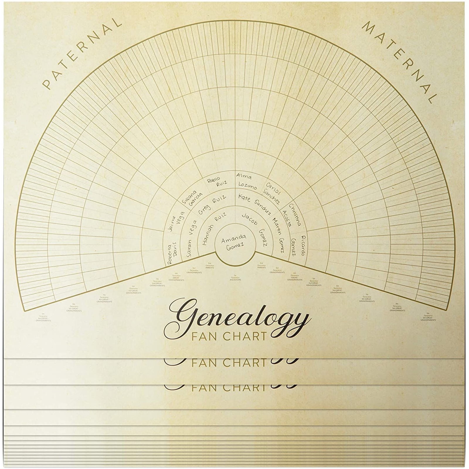 15 Pack Family Tree Genealogy Fan Chart 9 Generations Pedigree Vintage 17 X 22 Walmart Com