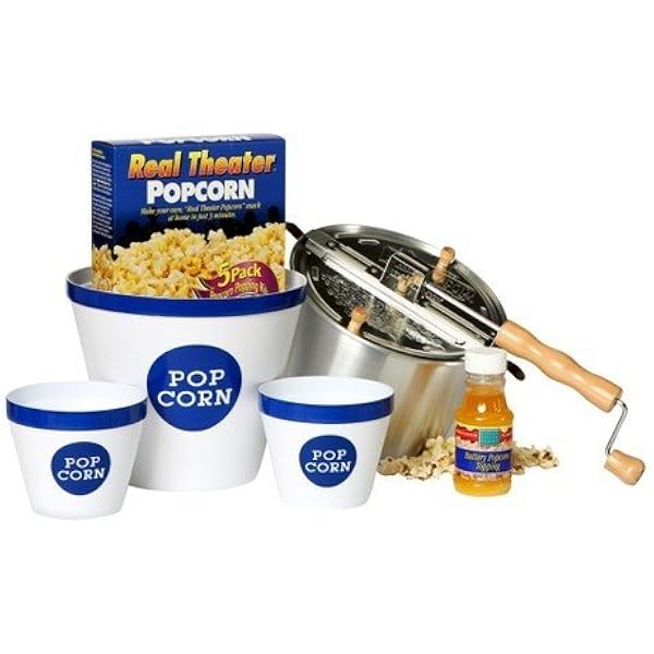Amazon Com Wabash Valley Farms Real Theater Whirley Pop Stovetop Popcorn Popper Party Pack Silver Home Kitchen